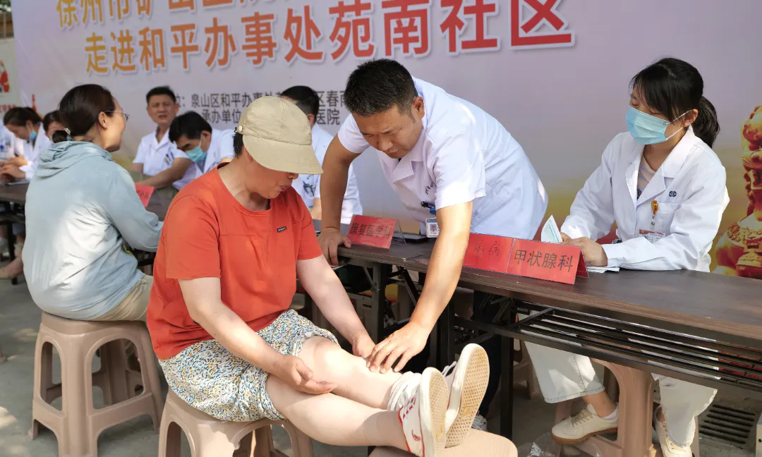 為持續(xù)推進(jìn)“我為群眾辦實(shí)事”實(shí)踐活動長效機(jī)制,徐州市礦山醫(yī)院黨委充分發(fā)揮黨建引領(lǐng)作用,于6月8日上午在泉山區(qū)和平辦事處苑南社區(qū)春雨物業(yè)服務(wù)站開展“我為群眾辦實(shí)事—優(yōu)質(zhì)服務(wù)送醫(yī)進(jìn)社區(qū)”義診活動,把貼心服務(wù)送到居民的“家門口”,讓群眾在家門口享受“專家團(tuán)隊(duì)面診”。