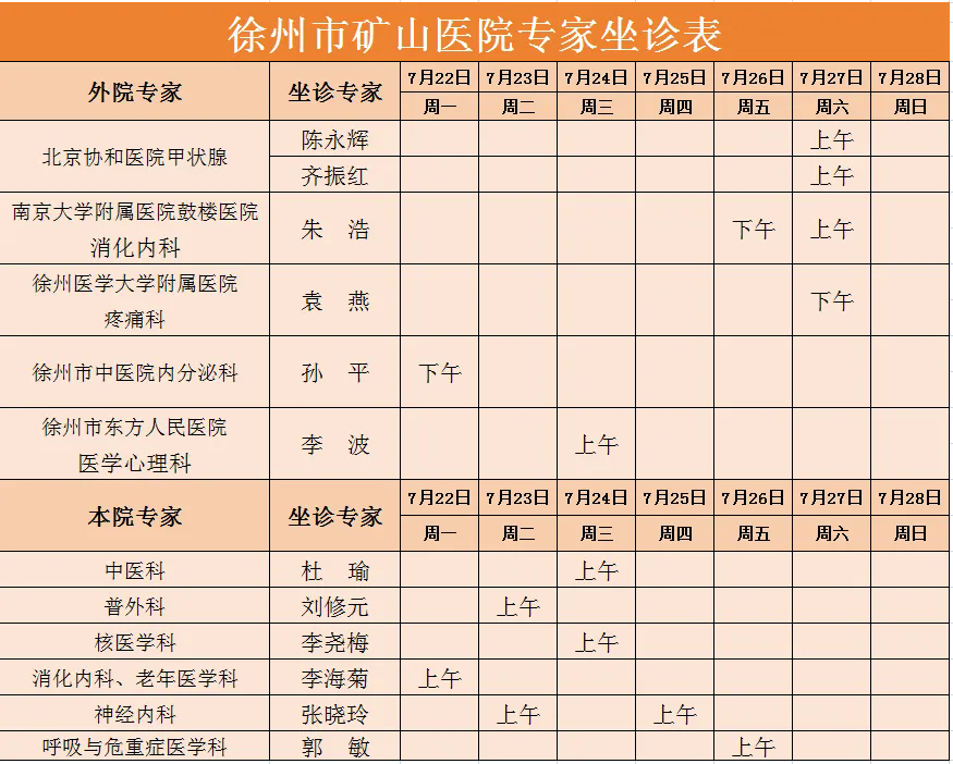 【專家出診預(yù)告】徐州市礦山醫(yī)院特邀專家一周出診表(7月22日—7月28日)