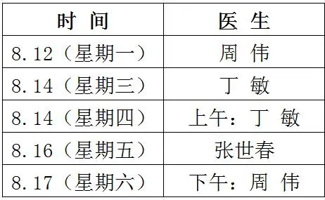 為了讓您能夠更便捷地獲取優(yōu)質(zhì)醫(yī)療服務,我們特別為您整理了 2024 年 8 月 12日至 8 月 18 日這一周的專家出診信息。我們始終秉持著以患者為中心的服務理念,致力于為您的健康保駕護航,希望這份詳細的坐診安排能幫助您合理規(guī)劃就醫(yī)時間,讓您在需要的時候能夠及時得到專業(yè)的診療。祝您身體健康!