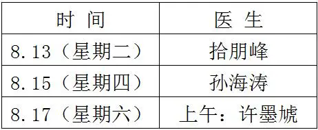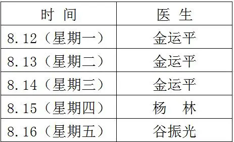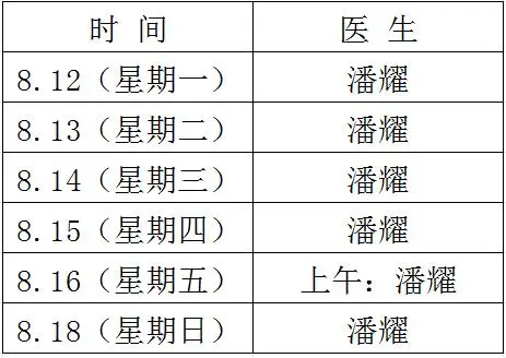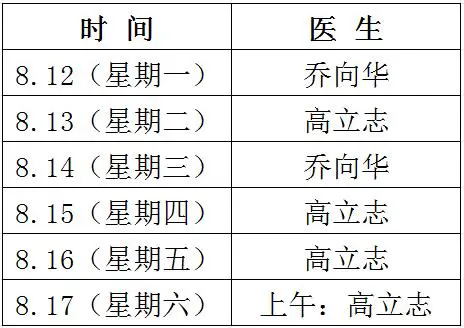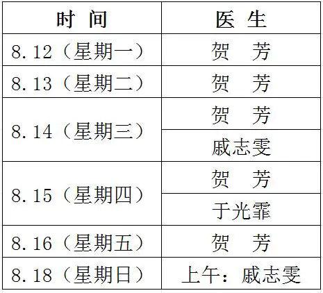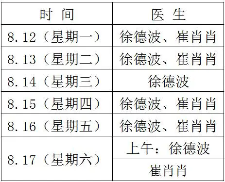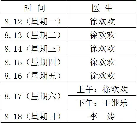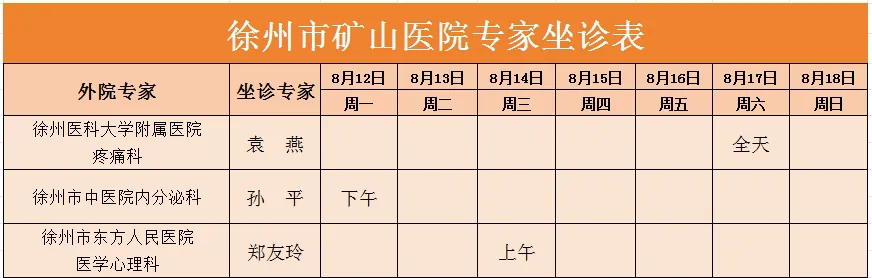徐州市礦山醫(yī)院各科室門診坐診表(8.12-8.18)