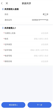 ◆3. 共濟(jì)賬戶綁定:進(jìn)入家庭共濟(jì)后,選擇“共濟(jì)賬戶綁定”功能,根據(jù)頁(yè)面要求填寫的項(xiàng)目,依次填寫共濟(jì)使用人對(duì)應(yīng)信息。