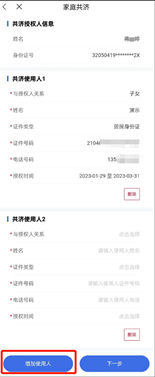 ◆4. 填寫后,如需增加使用人,可點(diǎn)擊左下方【增加使用人】按鈕進(jìn)行新增即可。