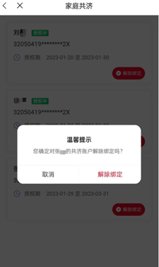 ◆9. 如需解綁,在“共濟(jì)賬戶授權(quán)記錄查詢”列表中選擇要解綁的記錄,點(diǎn)擊“解除綁定”即可。