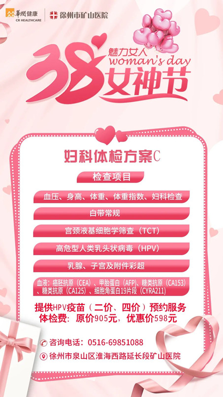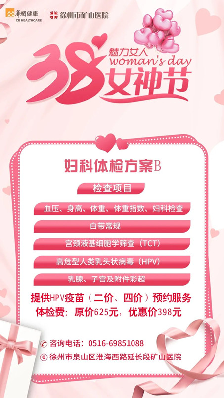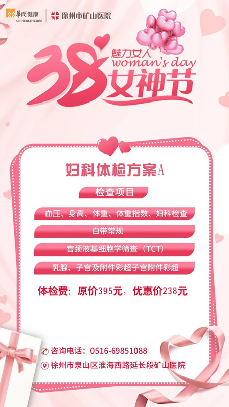 在“三八”女神節(jié)即將來(lái)臨之際,徐州市礦山醫(yī)院向廣大女性朋友送上最真摯的祝福,同時(shí)將開(kāi)展一系列關(guān)愛(ài)女性惠民體檢優(yōu)惠活動(dòng),給她們一點(diǎn)特別的禮物!
