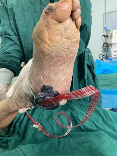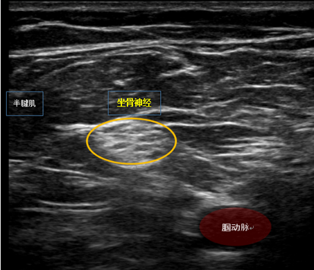 患者楊某某,95歲,因左足跟壓瘡40余天住院。入院后完善相關(guān)檢查后,擬在全身麻醉下行“左足跟清創(chuàng)+VSD術(shù)”?;颊吣X梗死7年,伴左側(cè)肢體偏癱,長期在家臥床,左足跟IV期壓瘡?;颊卟轶w不能配合,左下肢屈曲畸形,肌力0級(jí)。經(jīng)評(píng)估患者高齡且一般狀況差,行全身麻醉風(fēng)險(xiǎn)較大,為滿足手術(shù)需求,實(shí)行超聲引導(dǎo)下腘窩坐骨神經(jīng)組織阻滯術(shù)對(duì)該患者的手術(shù)及術(shù)后恢復(fù)無疑是最合適的。