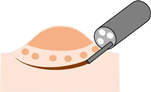 4、延標(biāo)記好的邊緣切開(kāi)病變周?chē)衬ぃ暾膭冸x病灶。