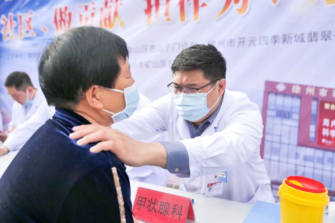 為貫徹落實(shí)黨史學(xué)習(xí)教育重要精神,深入開(kāi)展“我為群眾辦實(shí)事”實(shí)踐活動(dòng),徐州市礦山醫(yī)院黨委充分發(fā)揮黨建引領(lǐng)作用,聯(lián)合湖濱街道湖西雅苑社區(qū)黨總支部、徐州市泉山區(qū)杏山子門診部、徐州市開(kāi)元四季新城翡翠杏山小區(qū)開(kāi)展“我為群眾辦實(shí)事—優(yōu)質(zhì)服務(wù)送醫(yī)進(jìn)社區(qū)”義診活動(dòng),把貼心服務(wù)送到居民的“家門口”,讓群眾在家門口享受“專家團(tuán)隊(duì)面診”。