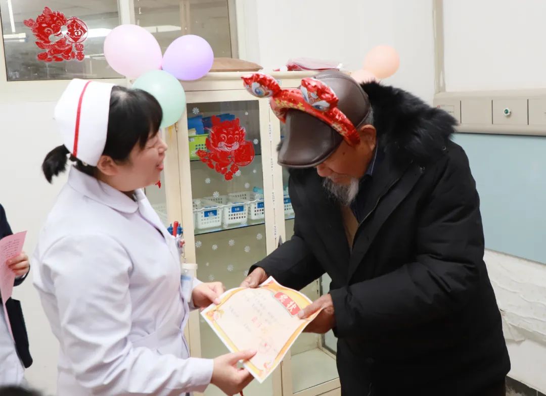 活動(dòng)中,醫(yī)護(hù)人員向在科室住院的患者及家屬送上新年祝福,并送上精心準(zhǔn)備的禮物和大紅的圍巾,病友們也準(zhǔn)備了曲調(diào)感人的歌曲,收到了大家的陣陣掌聲。整個(gè)過(guò)程充分體現(xiàn)了團(tuán)結(jié)協(xié)作,醫(yī)患連心?;颊呲w大爺激動(dòng)地說(shuō):"感謝各位醫(yī)護(hù)人員的關(guān)心,我過(guò)了一個(gè)特別有意義的新年!”